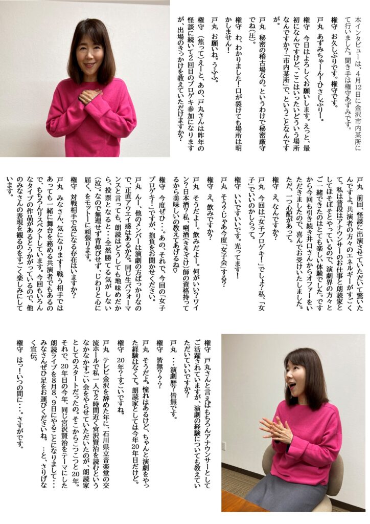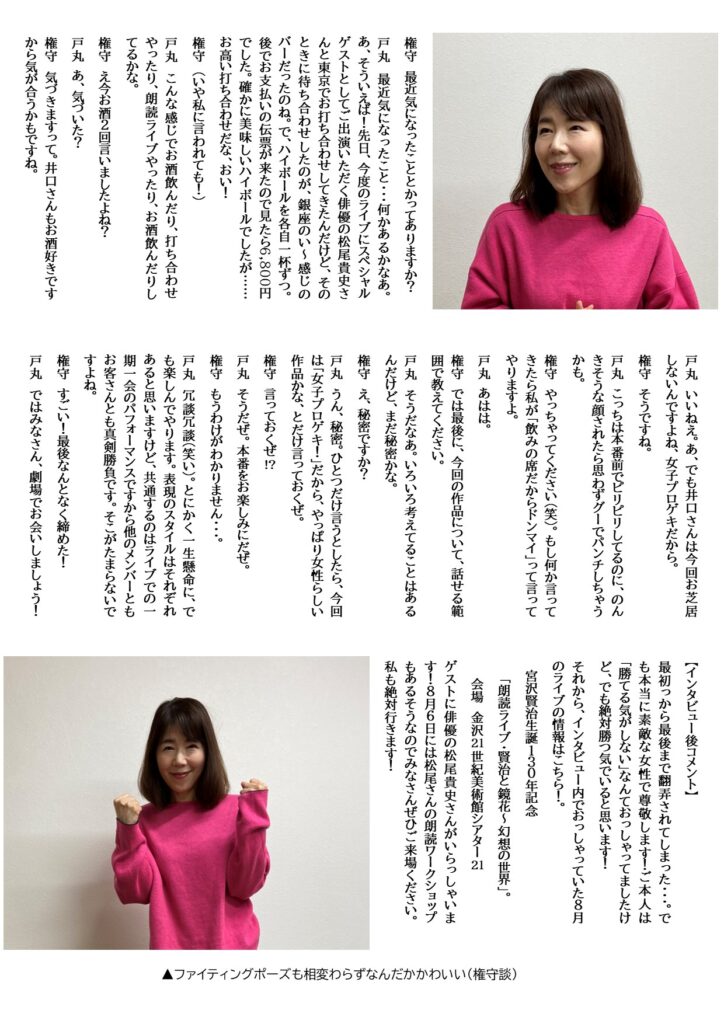 戸丸彰子インタビュー(2026) インタビュー 2026.04.222026.04.23 月刊プロゲキ!4月号表紙に戻る 「女子プロゲキ!」を予約する! 月刊プロゲキ!4月号表紙に戻る 「女子プロゲキ!」を予約する!
